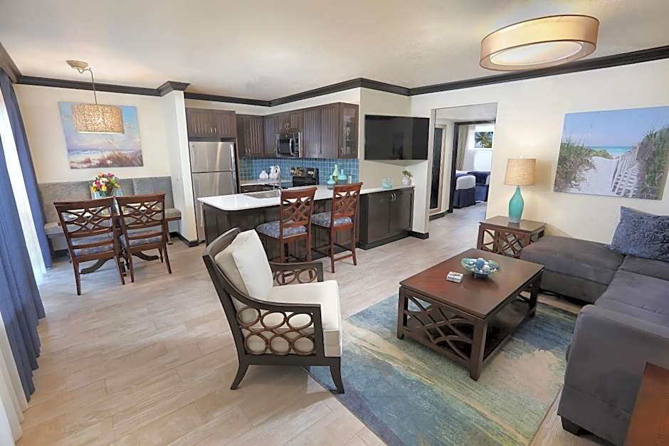 Featuring three 50-inch TVs with premium channels and DVD players, this accommodations includes a living room with a sofa bed, a fully equipped kitchen, and a dining table.